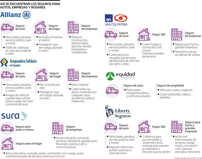 Liberty Seguros ofrece cobertura para vehículos particulares, de trabajo, motos y transporte público. Estas pagan por los daños que las protestas puedan ocasionar a otras personas o a sus bienes, sumado a los gastos asociados a una pérdida total por daños o hurto. En el caso de hogares, únicamente se contemplan eventos accidentales o fortuitos que los dañen o generen su pérdida, sumado a asistencias en caso de daños mínimos al interior del inmueble. Para las empresas, existen seguros para Pyme y grandes compañías, que cubren situaciones como incendio, terremoto, incluso por actos deshonestos y de riesgo corporativo. Sin embargo, contempla como opcional el factor de actos mal intencionados de terceros y huelga, motín, conmoción civil o popular y asonada.